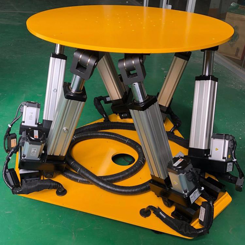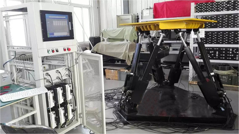 廣泛應用到各種訓練模擬器如飛行模擬器、艦艇模擬器、海軍直升機起降模擬平臺、坦克模擬器、汽車駕駛模擬器、火車駕駛模擬器、地震模擬器以及動感電影、娛樂設備等領域,甚至可用到空間宇宙飛船的對接,空中加油機的加油對接中。在加工業可制成六軸聯動機床、靈巧機器人等。由于六自由度運動平臺的研制,涉及機械、液壓、電氣、控制、計算機、傳感器,空間運動數學模型、實時信號傳輸處理、圖形顯示、動態仿真等等一系列高科技領域,因而六自由度運動平臺的研制變成了高等院校、研究院所在液壓和控制領域水平的標志性象征。