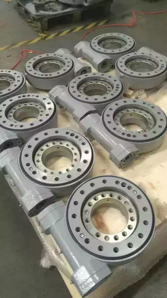 WE回轉(zhuǎn)驅(qū)動(dòng)裝置也叫回轉(zhuǎn)支承、回轉(zhuǎn)減速機(jī),是一種新型的回轉(zhuǎn)類產(chǎn)品,通常由蝸桿、回轉(zhuǎn)支承、殼體、馬達(dá)等部件構(gòu)成。由于核心部件采用回轉(zhuǎn)支承,因此可以同時(shí)承受軸向力、徑向力、傾翻力矩。回轉(zhuǎn)驅(qū)動(dòng)跟傳統(tǒng)的回轉(zhuǎn)類產(chǎn)品相比,具有安裝簡(jiǎn)便、易于維護(hù)、更大程度上節(jié)省安裝空間等特點(diǎn)。